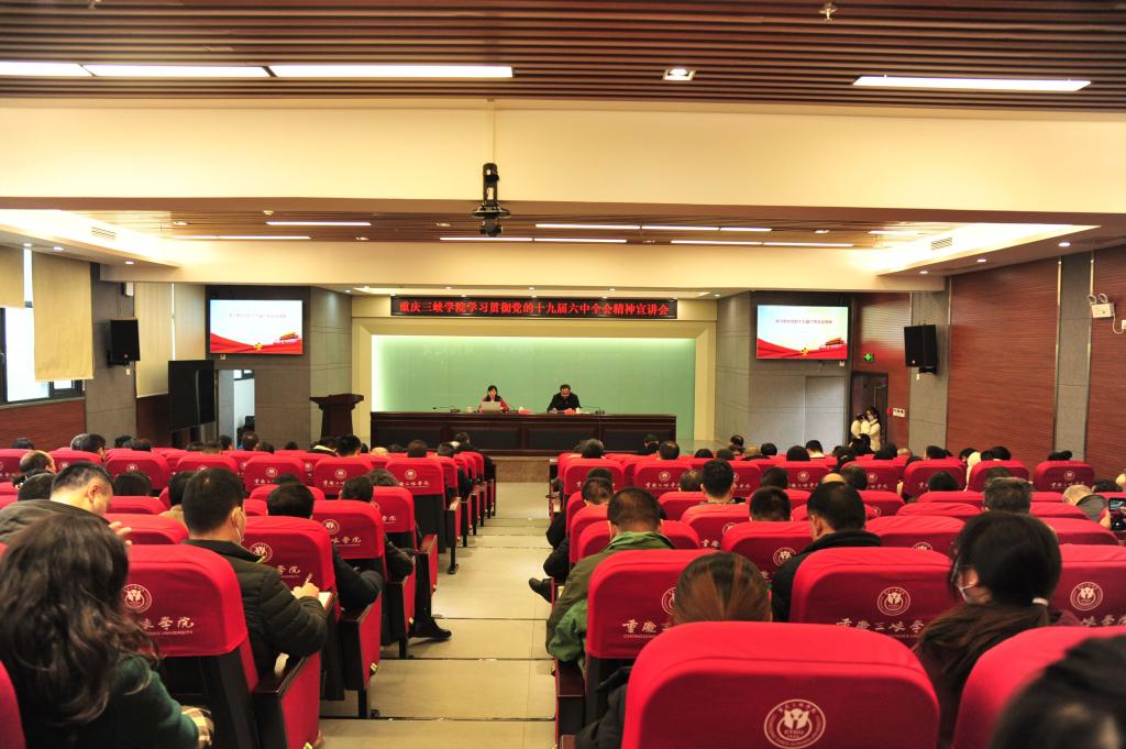 学校党委书记李廷勇表示,宣讲报告坚持以历史唯物主义为指导,深刻把握党史发展规律和发展大势,坚持历史与现实纵向贯通,中国与世界横向关联,政治站位高,思想深刻,史料详实,叙述生动,特别结合了习近平总书记对重庆发展的批示指示精神和中国共产党重庆党史,有很强的现实针对性和指导意义,为全校师生学习贯彻党的十九届六中全会精神具有重要启示。他要求参会同志认真领会宣讲精神,认真开展高质量的学习和宣讲工作,并与本职工作、部门工作和学校工作结合起来思考,做到学思结合,学用结合,积极响应党中央号召和市委要求,把党的十九届六中全会精神全面落实在校园里,成为推动学校高质量发展的强大动力。