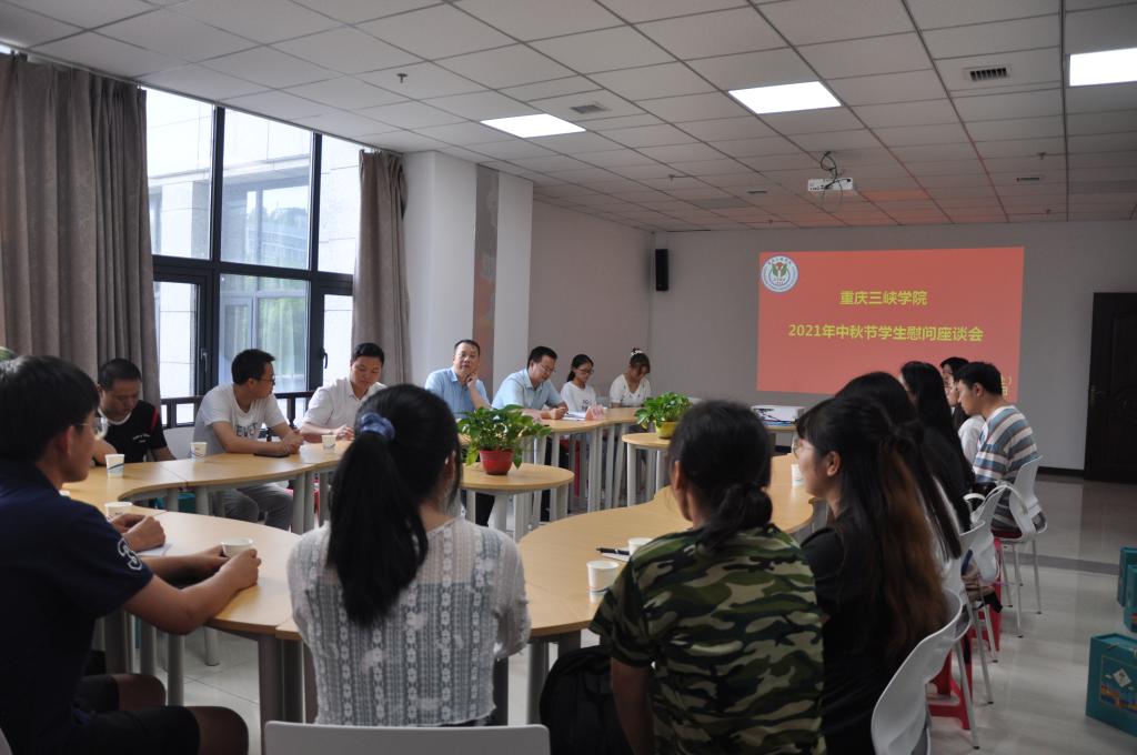 9月15日,beat365官网在科技楼举行中秋节慰问学生座谈会。党委常委、副校长臧小林和来自各二级学院的40余名学生代表参加座谈。