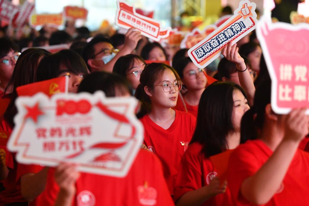 器乐合奏《在希望的田野上》、情景舞蹈《勇创新路》、经典歌曲联唱《春天的故事》《军港之夜》、情景讲述《青春报告》等节目,让人回味无穷。最后,在全场齐唱《没有共产党就没有新中国》歌声中圆满落下帷幕。