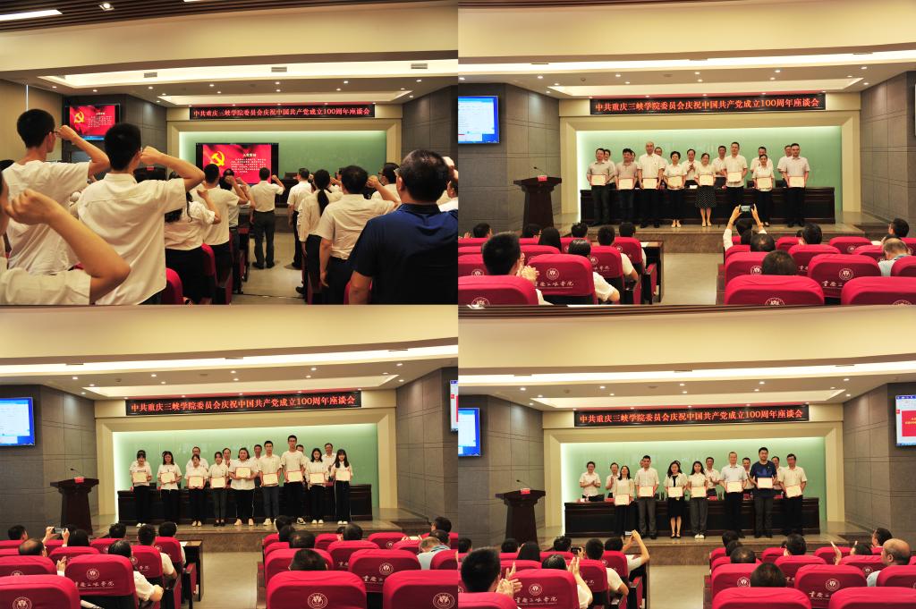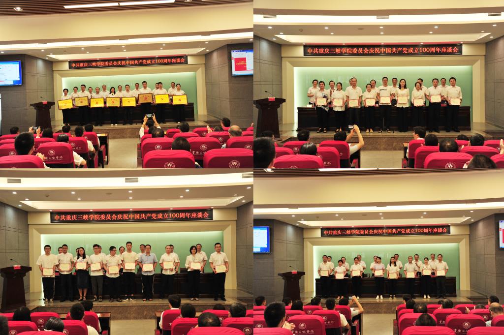 党委常委、副校长陈文昆宣读《中共重庆市委关于表彰重庆市优秀共产党员、优秀党务工作者和先进基层党组织的决定》《中共重庆市委教育工作委员会关于表彰教育系统优秀共产党员、优秀党务工作者和先进基层党组织的决定》和学校《关于表彰2020—2021学年度“两优一先”的通报》。大会对涌现出来的8个基层党组织和51名先进个人进行表彰,环境与化学工程学院党总支、机关二总支四支部、重庆三峡农业科学院党委等8个基层党组织被授予“先进基层党组织”;数学与统计学院教师宋晓倩、丁飞、文学、赵彦佳等36名教师和学生被授予“优秀共产党员”;马兵、刘美、李华林等15名同志被授予“优秀党务工作者”。