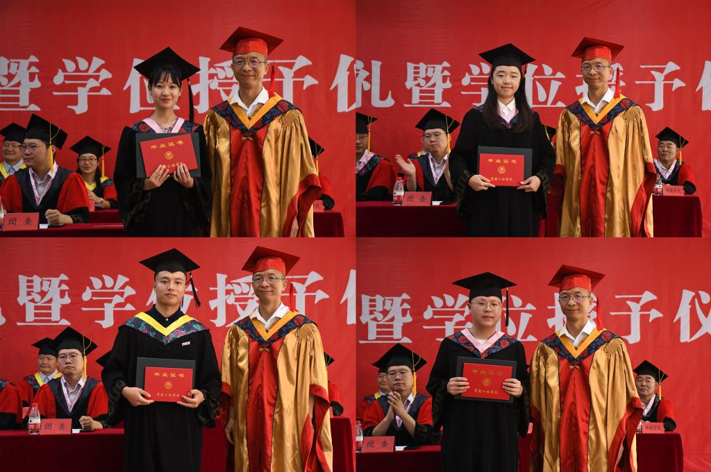 典礼伊始,全场人员起立,饱含热情齐声高唱国歌,向祖国致敬。学校领导宣读各级各类表彰文件,为获得表彰的毕业生颁发荣誉证书,并通报2021届毕业、学位授位情况。张伟为2021届毕业生代表颁发毕业证书、学位证书,拨流苏授位。