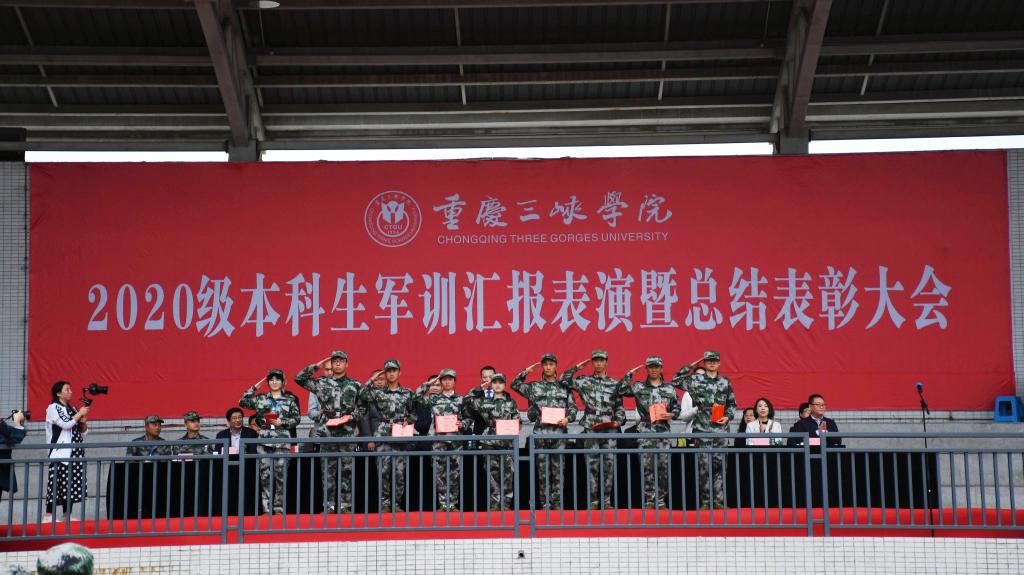 4月19日下午,学校在综合田径运动场举行2020级本科生军训汇报表演暨总结表彰大会。学校党委常委、副校长臧小林,万州区人武部副部长刘大强出席大会。学校相关职能部门、群团组织及各二级学院负责人,跟训辅导员,全体军训教官及2020级全体本科生参加相关活动。大会由学校武装部部长秦勤主持。