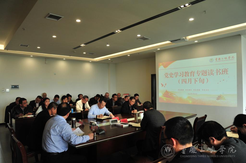 4月28日下午,学校举行党史学习教育专题读书班集中研讨会。党委理论学习中心组成员,各党总支、直属党支部书记,机关各支部书记参会学习。会议由党委书记李廷勇主持。
