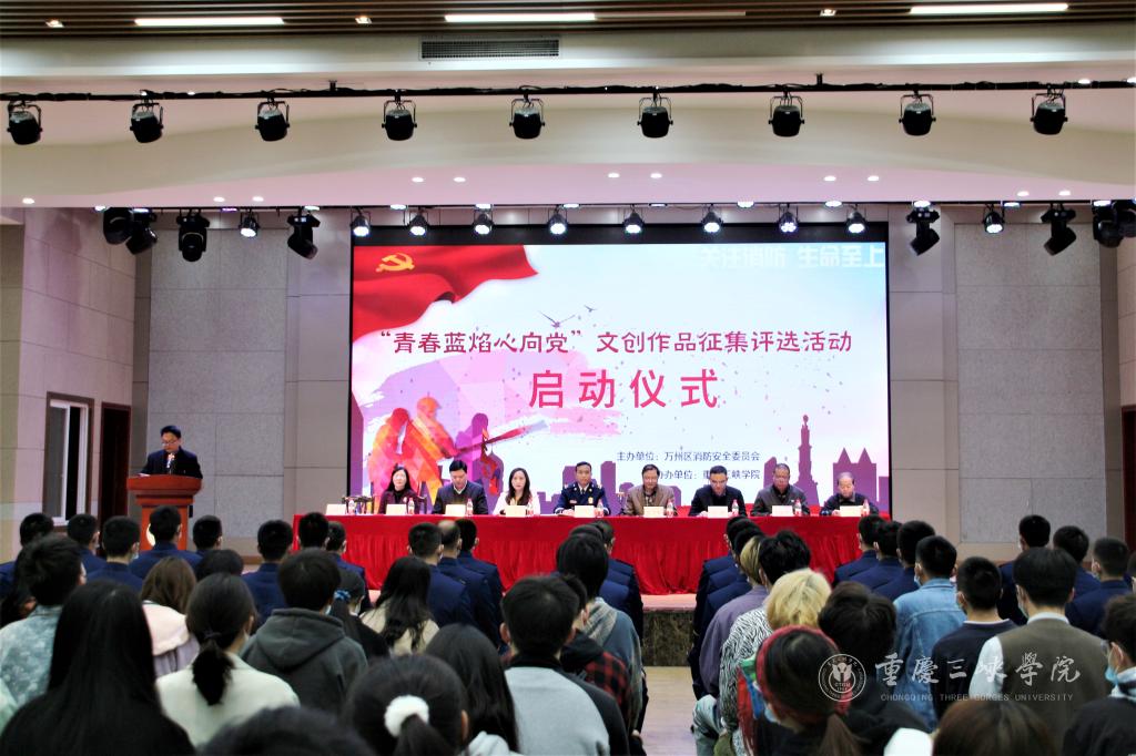 3月26日,为隆重庆祝中国共产党成立100周年,深入贯彻学习习近平新时代中国特色社会主义思想和重要训词精神,由万州区消防安全委员会主办,beat365官方网站承办的“青春蓝焰心向党”文创作品征集评选活动启动仪式在beat365官网百安校区隆重举行。万州区消防救援支队党委书记、政委伍联波,beat365官方网站党委常委陈孝胜以及相关职能部门、二级学院的负责人出席启动仪式。启动仪式由美术学院党总支书记赵翔宇主持。