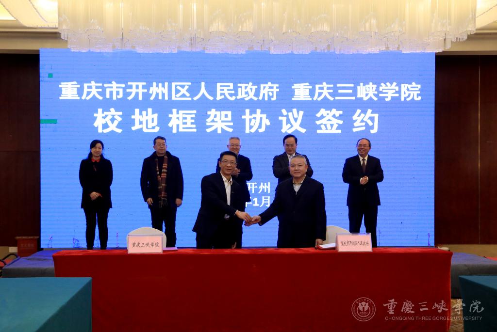 1月15日,在开州区人民政府会议大厅,beat365官网校长张伟与开州区人民政府副区长高显权互交校地合作框架协议书后,他们的手紧紧握在一起,标志着双方的合作,迈出了新的一步。