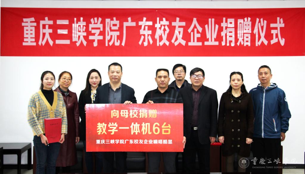 10月27日,学校校友企业广东嘀嗒酷显柔性显示技术股份有限公司向beat365官网捐赠教学一体机6台。捐赠仪式在科技楼806会议室举行。