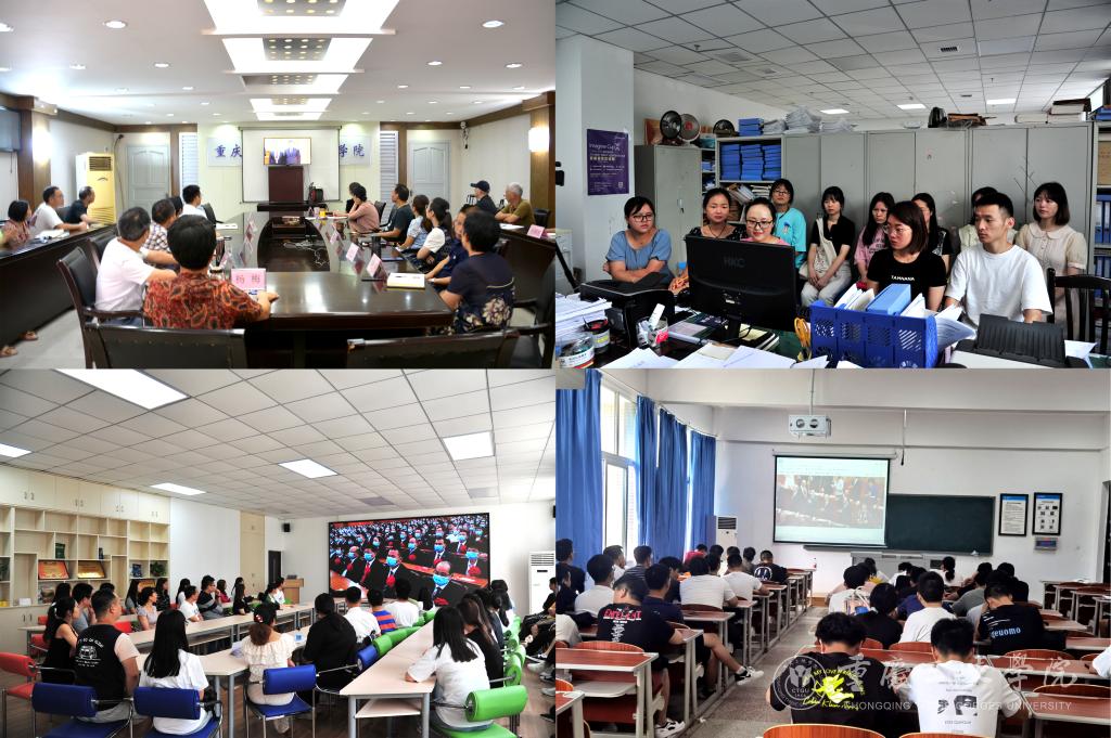 上午10时,在校校领导、全体中层干部齐聚科技楼连廊会议室收看;各二级学院和职能部门、三峡农科院各部门均以各种方式组织师生收看。