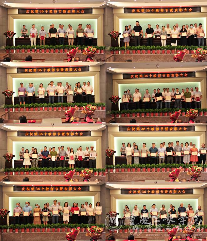 大会隆重表彰了2019-2020学年讲课比赛获奖教师;2020年“教学十佳”获奖教师;2020年优秀教师、优秀教育工作者;第七届教学成果奖获奖教师;2019-2020年度获得部市级及以上各类奖励的教师代表,并向他们颁发荣誉证书。
