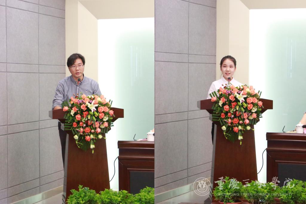 马克思主义学院孙佳代表获奖教师发言。他说:“作为一名人民教师,面对学生,要努力成为启梦人;面对自我,要努力成为追梦人;面对学校,要努力成为筑梦人。要把个体进步与学校发展紧密联系起来,在实践中不断前行。”