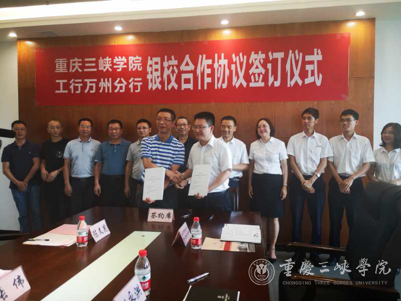 7月10日,学校与工商银行万州分行银校合作签约仪式在科技楼819会议室举行。工行万州分行行长刘永洪,副行长杨建康;校长张伟,副校长陈文昆、付川出席签约仪式。签约仪式由陈文昆主持。