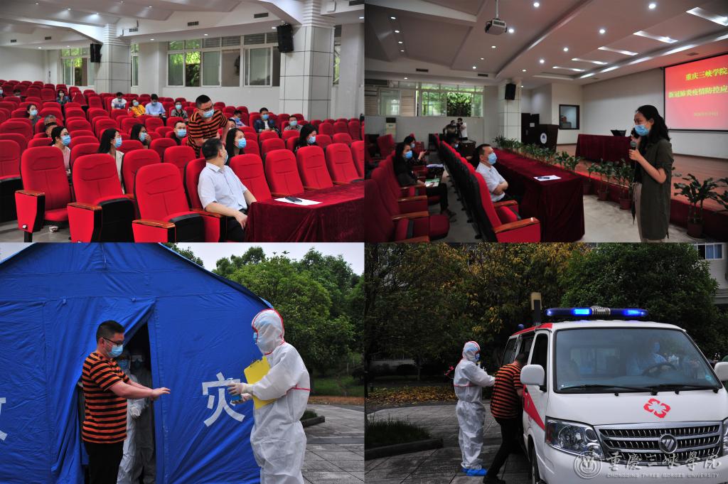 副校长臧小林、万州区疾控中心专家、学校疫情防控领导小组等单位有关负责同志到现场组织了演练工作;党政办、宣传部、医院、后勤服务中心、保卫处等方面的负责同志及有关工作人员参加演练。