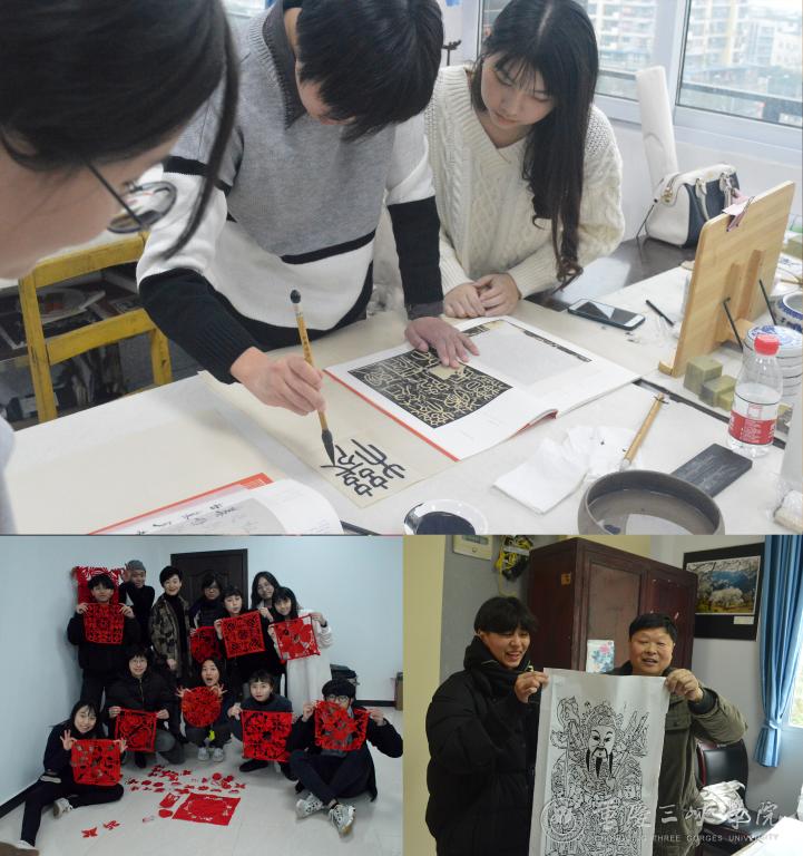 在为期7天的交流中,华梵大学师生与beat365官网美院师生一同探讨艺术,交流思想,在彼此协作中拓展知识、体验文化、提升技能、增进友谊。大家共同参观了三峡移民纪念馆,走进课堂亲身参与体验书法、三峡巫饰、陶艺、国画、木雕、漆艺、剪纸和印染等文化艺术项目,还赴梁平参观双桂堂、博物馆、竹帘和年画艺术。