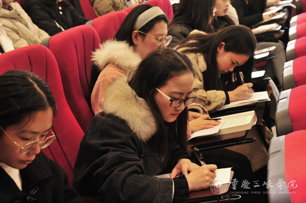 组织部、宣传部、学生工作部、团委负责人;各二级学院党总支书记、学工负责人;全校思想政治理论课兼职教师、青马班学员代表参加了报告会。