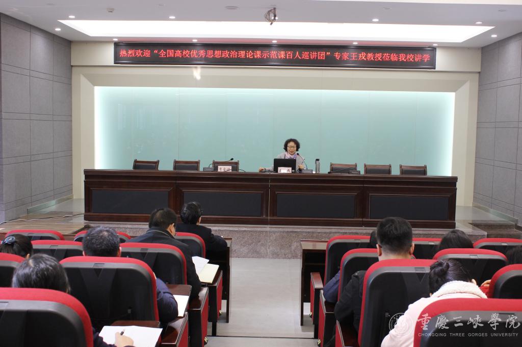 宣讲中,王戎教授与大家一同全面系统分享了近距离聆听习近平总书记在全国思想政治理论课教师座谈会上的讲话精神,深刻阐述了思政课的历史地位,解读了新时代对思政课教师的要求和思政课改革“八个一”要求,介绍了重庆交通大学思政课改革探索情况。