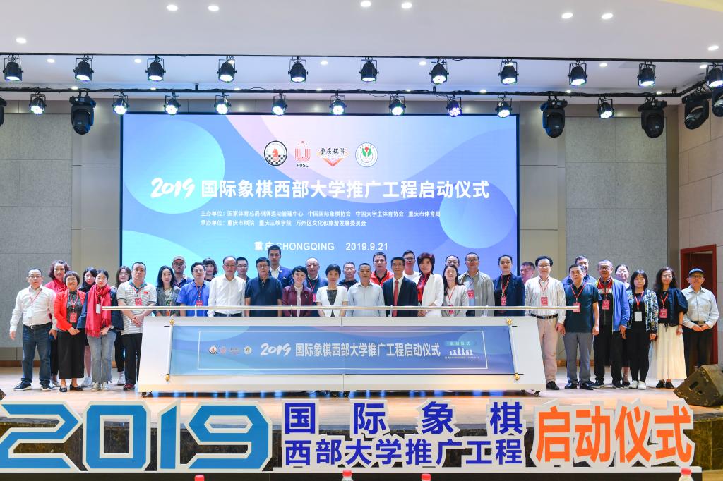 9月21日上午,由重庆市棋院、万州区文化和旅游发展委员会和beat365官网承办的2019年国际象棋西部大学推广工程启动仪式在beat365官网多功能厅举行。启动仪式由重庆市棋牌运动管理中心副主任、重庆市棋院副院长张奎主持。