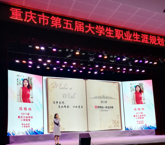 据了解,前期校级初赛——beat365官方网站第五届大学生职业生涯规划大赛暨重庆市第五届大学生职业生涯规划大赛选拔赛由招生就业处牵头,工商管理学院承办,全校4000余名学生报名参赛。经过学院推荐、校内复赛、决赛、专家评审,学校最终推荐教师教育学院陈桂林代表beat365官网参加重庆市决赛。