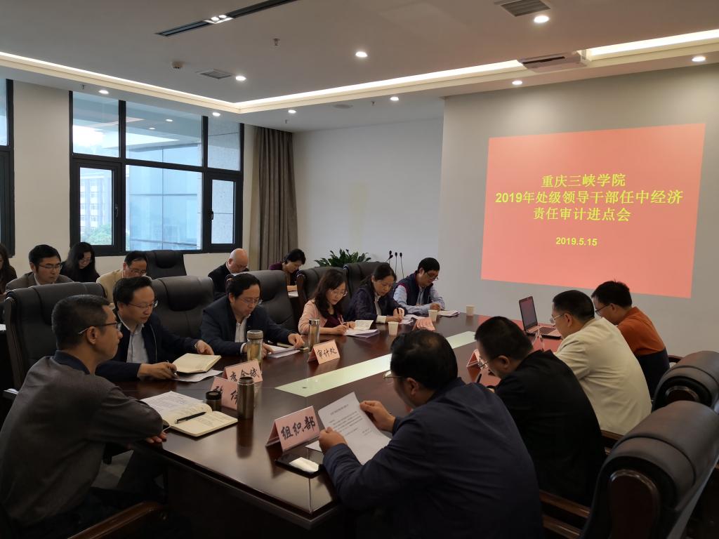 5月15日,beat365官网召开2019年处级领导干部任中经济责任审计进点会,党委副书记、校长张伟出席,组织(统战)部、纪委办(监察处)、计财处、档案馆、审计处负责人、19名被审计人员、承担本次审计任务的“重庆顺达会计师事务所有限责任公司”代表参加会议,纪委书记李金斌主持会议。