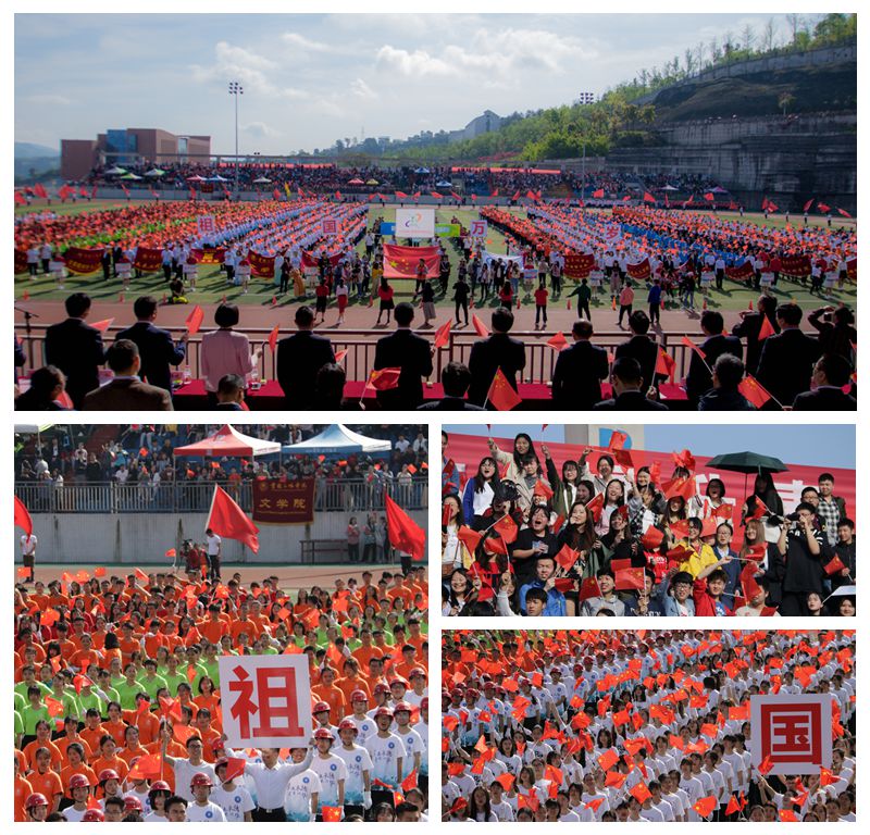 “我和我的祖国,一刻也不能分割……”悠扬的歌声拉开了开幕式的表演,全校师生挥舞着手中的五星红旗,用一场洋溢着青春和爱国热情的快闪,演绎了一曲《我和我的祖国》,献礼新中国70华诞。