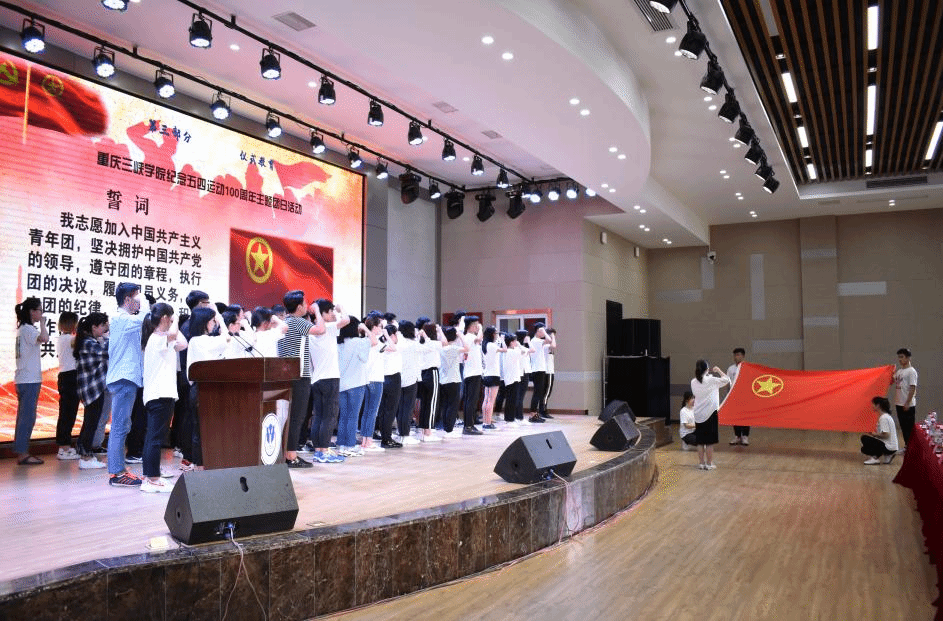 “榜样引领”环节,通报表彰了全校2018年度3个“五四红旗团总支”、2名“五四红旗团总支书记”、25个“五四红旗团支部”、419名“优秀共青团员”、408名“优秀共青团干部”等先进集体和个人;“仪式教育”环节,按照团中央关于团员发展的最新要求,本次符合条件的70名青年学生,在现场团旗映衬下庄严宣誓,光荣加入共青团组织;“青春畅聊”环节,相关校、院级团学组织代表从“党建带团建”“第二课堂德育美育”“学生会改革进行时”“学生社团管理”“青年学生创新创业”“绿色社会实践、志愿服务”等方面分享交流工作经验。