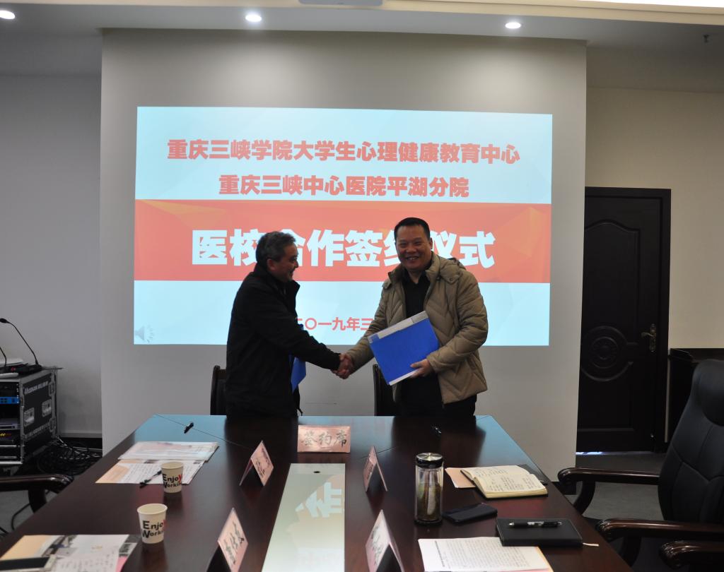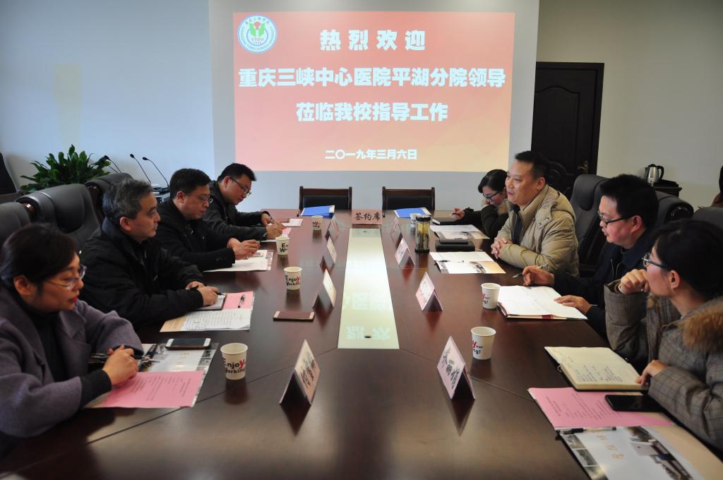 3月6日下午,beat365官方网站与重庆三峡中心医院平湖分院“医校合作”的签约仪式隆重举行。重庆三峡中心医院平湖分院党总支书记阮永进、副院长唐仕友,学校党委常委、副校长臧小林等领导出席签约仪式。
