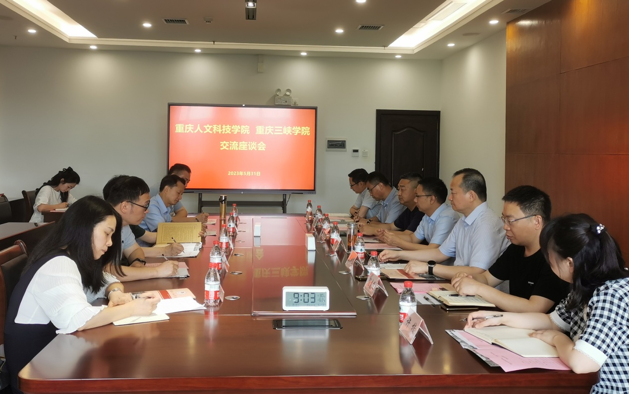 5月31日上午,重庆人文科技学院副校长孙敏一行到访beat365官网,就学科建设和研究生教育进行调研交流。学校副校长付川、研究生处处长聂祥飞、文学院院长李俊、土木工程学院院长程龙飞、传媒学院院长韩红宇以及研究生处相关人员参加座谈会。