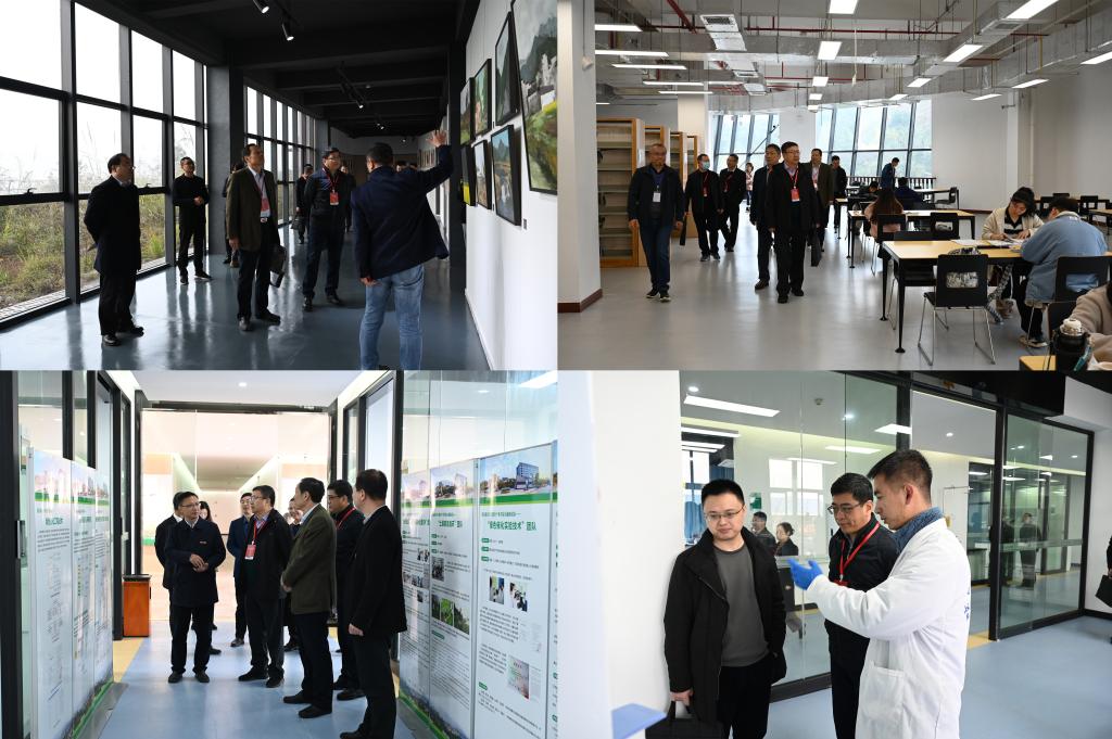 专家组一行还集体考查了美术展厅、图书馆、低碳技术与服务产业学院、校企合作实验室、工程实训中心的教育教学主要场地及设施设备情况等。