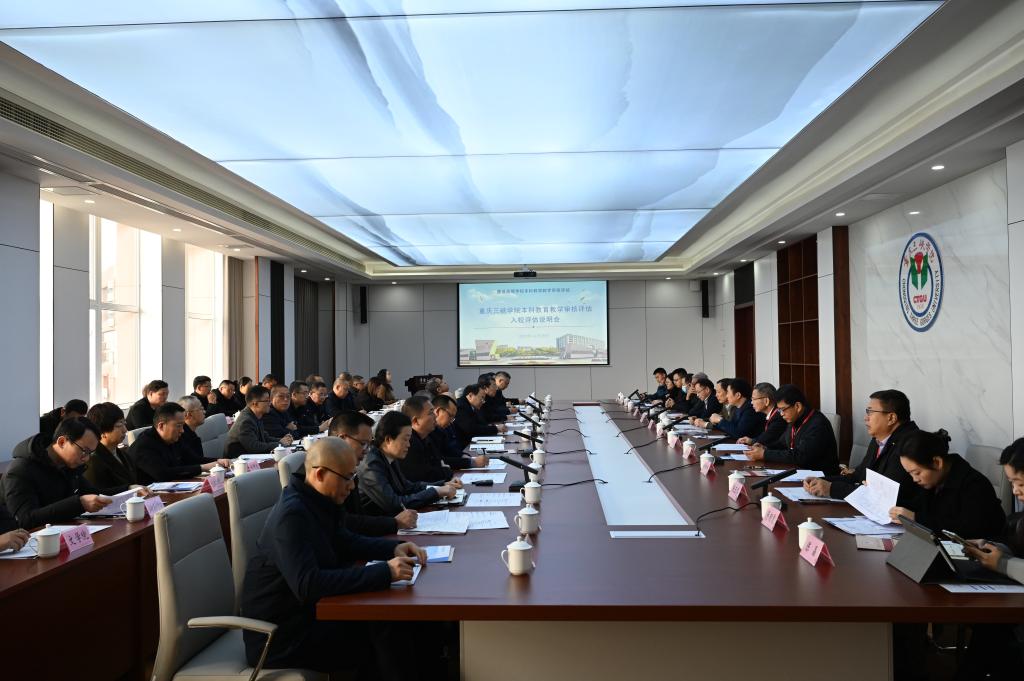 董发勤就本次入校评估工作的重点及要求作了补充说明,他强调,此次入校评估工作将对学校的办学方向与本科定位、培养过程、教学质量、教师队伍、学生发展、质量保障、教学成效等七个方面进行深度考核。