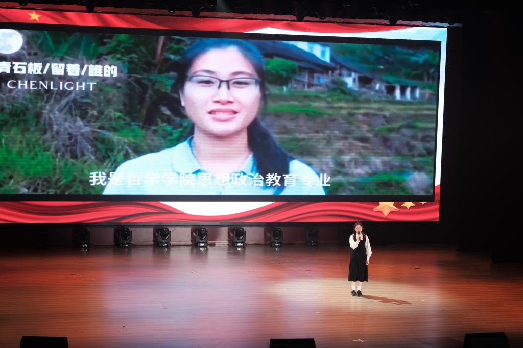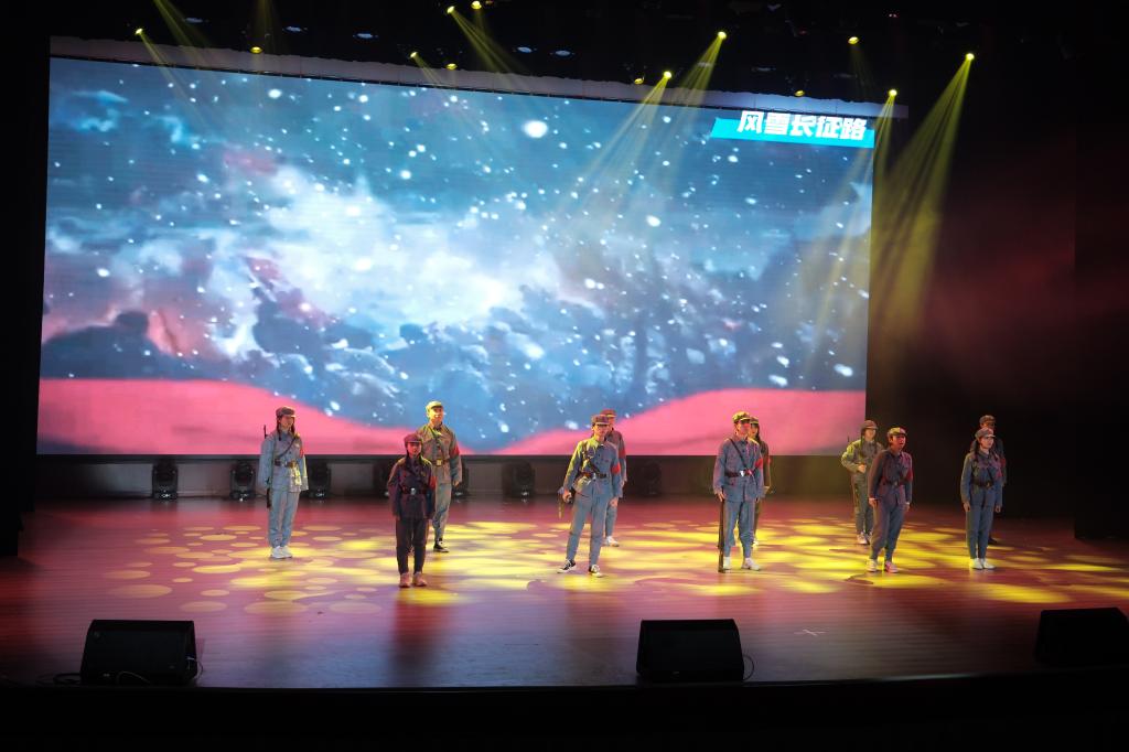 当天的展演环节,情景剧《风雪长征路》《人间曾伏虎》《敢为天下先》《群山不会忘记》,主题演讲《一点星火红,燃我华夏魂》《担当复兴大任,成就时代新人》《以青春之我,续写觉醒华章》《书写青春华章》,红色基地研学《品移民之行,感爱国之情》,研读经典《读<红岩>有感》《读<谁是最可爱的人>有感》,一封感恩的信——《读中国》等相继登台演出。整场展演青春昂扬,精彩纷呈。师生们一幕幕的用心演出,既是一堂堂生动活泼的思政课,也是一场场精彩纷呈的艺术盛宴,展现了beat365官网师生以党的二十大精神为指引,踔厉奋发、勇毅前行、昂扬向上的奋斗姿态。