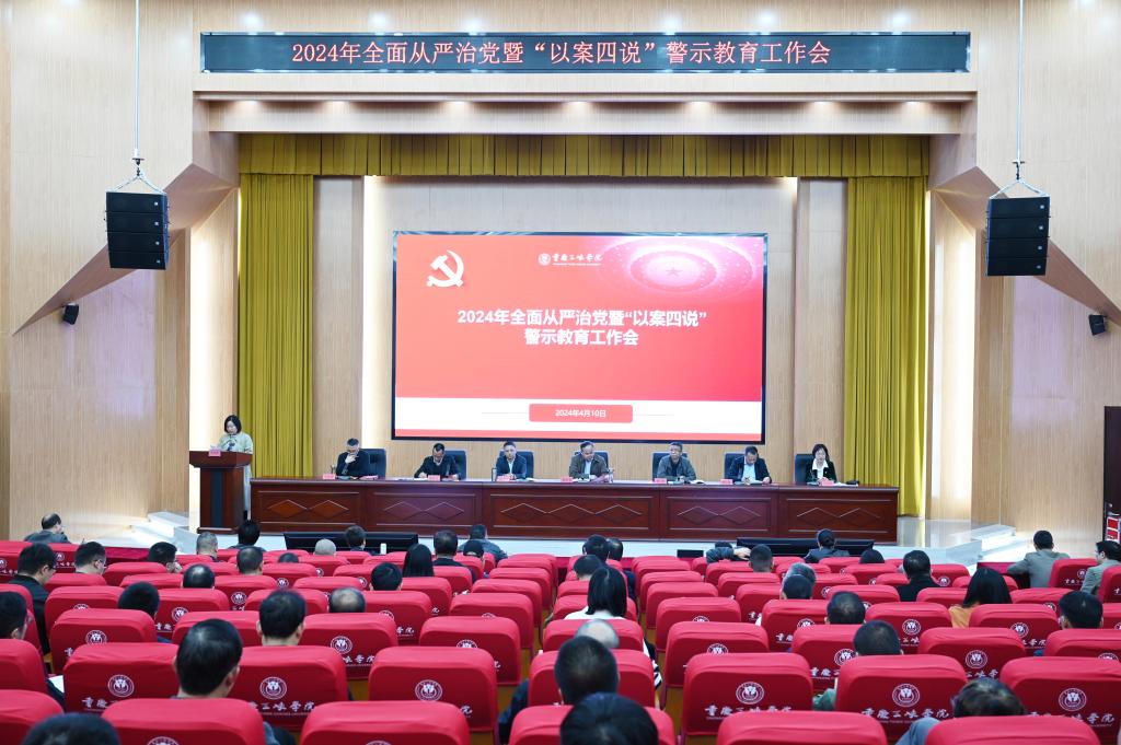 4月10日,学校党委召开2024年全面从严治党暨“以案四说”警示教育工作会。总结回顾2023年学校全面从严治党工作,分析研判形势,研究部署2024年重点工作。学校党委书记李廷勇出席会议并讲话。党委副书记、校长张伟主持会议。全体校领导、副处级以上干部、专职组织员参加会议。