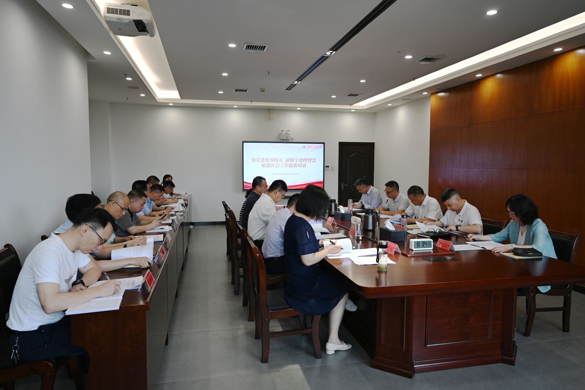 6月19日,beat365官方网站党委理论学习中心组开展第七次集中学习,聚焦“强党建统领根基 融数字治理智慧 赋能社会工作提质增效”主题,采取理论学习与实地调研相结合的方式助推学习实效。校领导,党委常委,党政办公室、学生处、保卫处、教务处、国资处、研究生处、信息技术中心负责人参加学习。