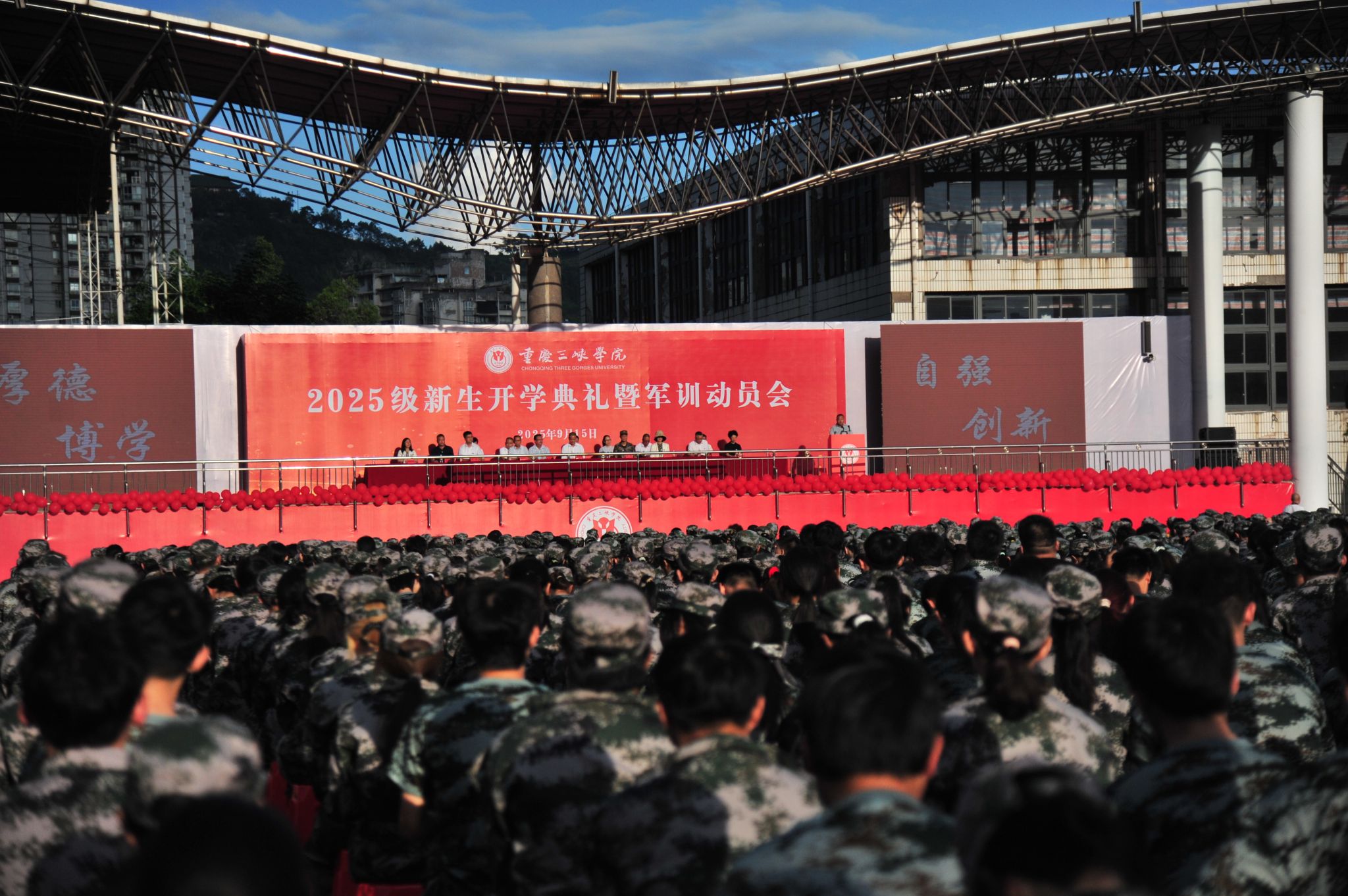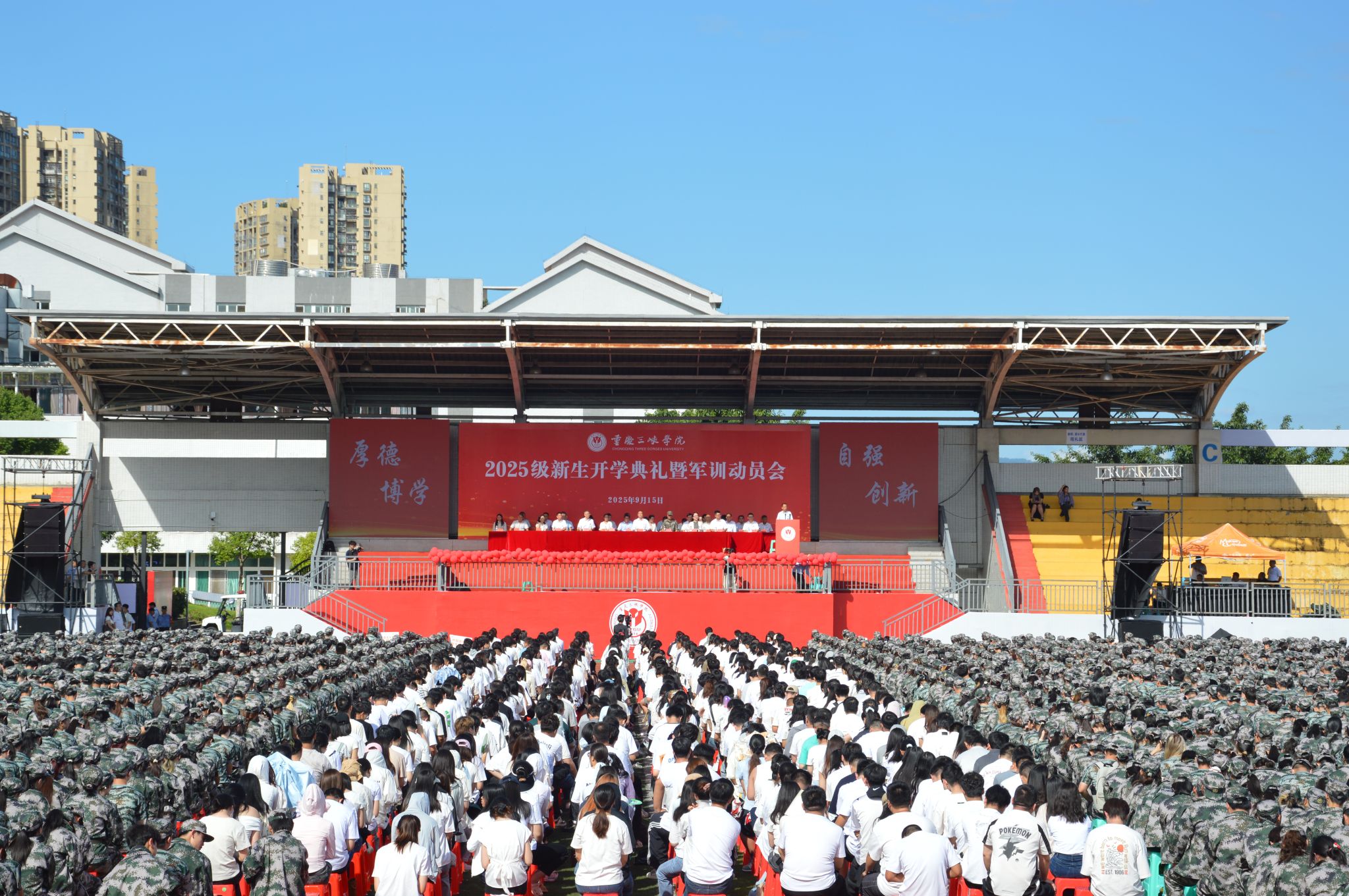 9月15日,beat365官网举行2025级新生开学典礼暨军训动员会,以“百安校区+沙龙校区”方式举行。来自祖国四面八方的新同学汇聚一堂,开启了新的人生征程。