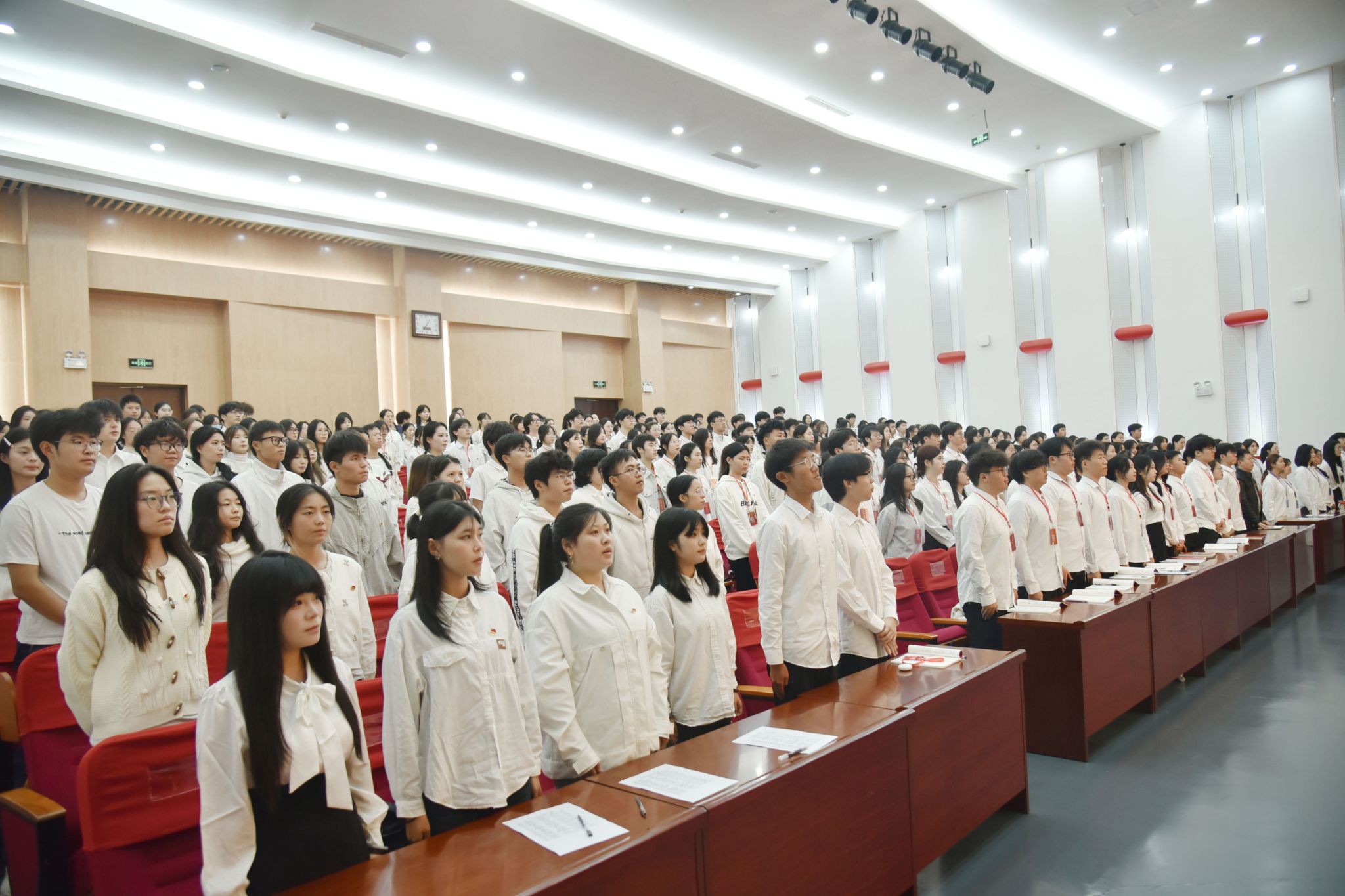 开班式在庄严的国歌声中拉开序幕。谢昆宣读了《关于举办“青马工程”第二十二期大学生骨干培训班的通知》。教师教育学院2023级小学教育(师范)1班任飞杨同学代表全体学员发言,倡议同学们保持好学乐学心态,通过“青马工程”的理论学习和社会实践,筑牢信仰之基,练就过硬本领,以实际行动助力学校高质量发展,为实现中华民族伟大复兴的中国梦贡献青春力量!