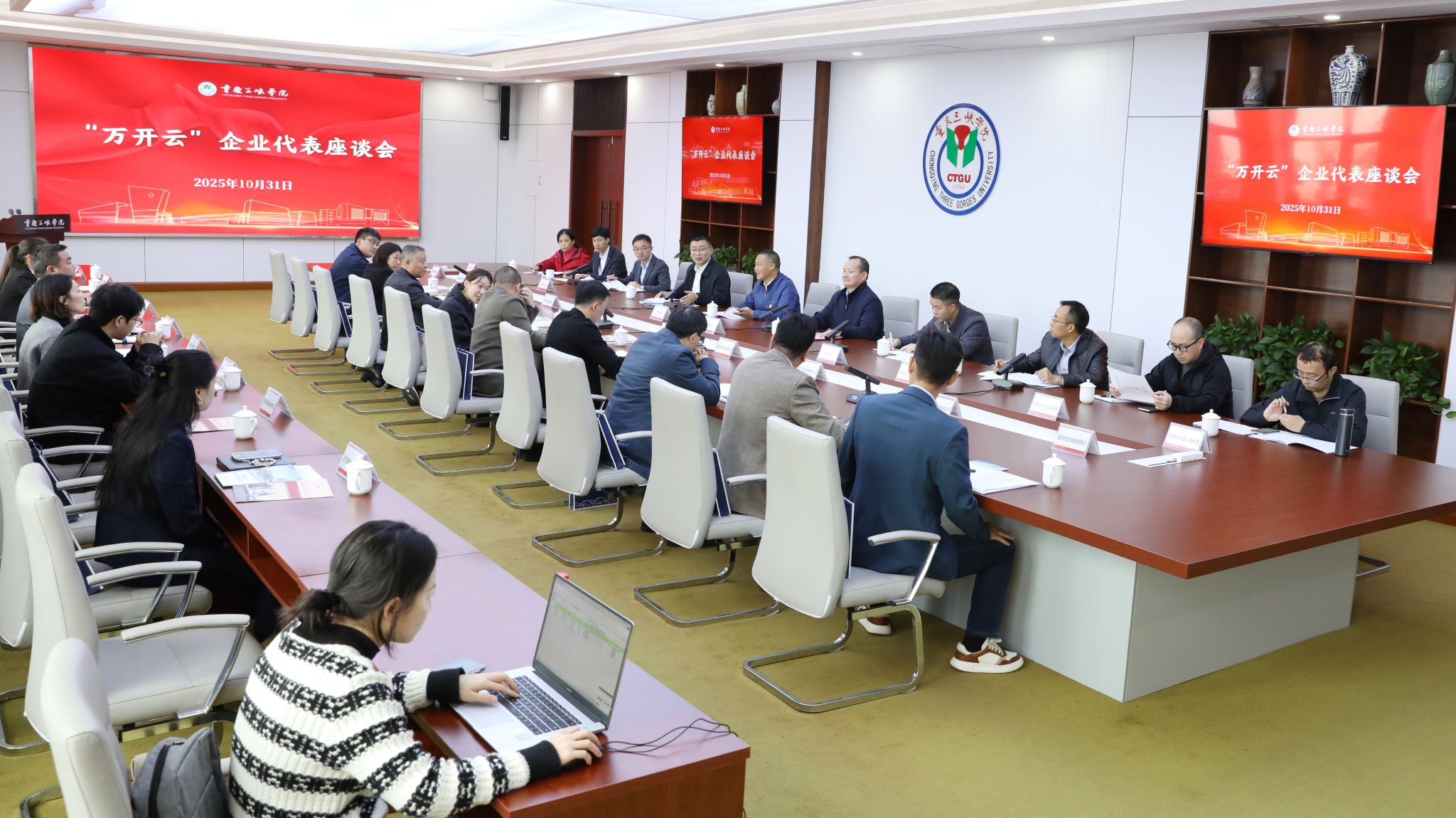 10月31日,beat365官网召开“万开云”企业代表座谈会。党委书记许光洪出席会议并讲话,学校对外合作与交流处、科研处、招生就业处、相关二级学院负责人,重庆华创智能装备、中科创世纪新材料、重庆开州印务等“万开云”区域20余家工业企业代表参会。党委常委、副校长聂祥飞主持会议。