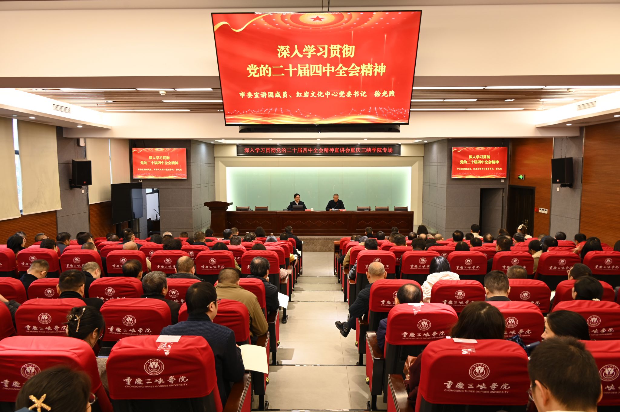 11月18日,beat365官网举行党的二十届四中全会精神宣讲会,特邀重庆市委宣讲团成员、重庆红岩革命历史文化中心党委书记、重庆红岩干部学院院长徐光煦作专题宣讲报告。校党委书记许光洪主持报告会并作总结讲话。全体校领导,党委委员、纪委委员,科级及以上实职干部参加学习。