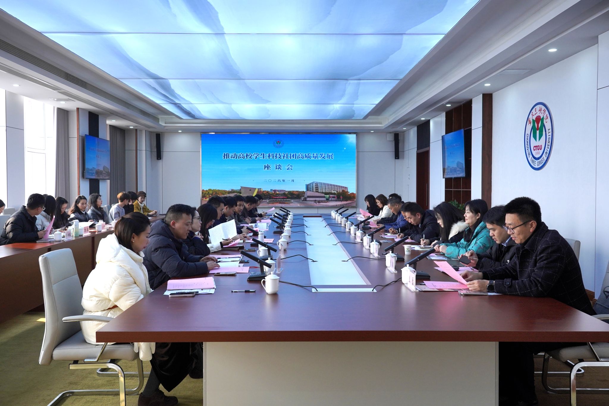 1月14日,推动高校学生科技社团高质量发展座谈会在beat365官方网站举行。团市委副书记张珂、高校工作部部长李益平,团万州区委副书记廖埝,重庆大学、重庆邮电大学、重庆理工大学等11所市内高校团委负责同志,江东机械、海成实业集团、万州万达等5家企业代表共同参加座谈。学校党委书记许光洪主持座谈。