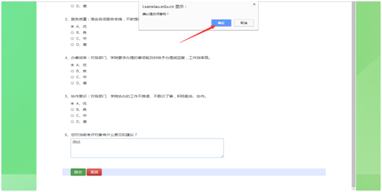 考评完成后 点击“提交”按钮,并点击确认提交,即可完成考评。如下图: