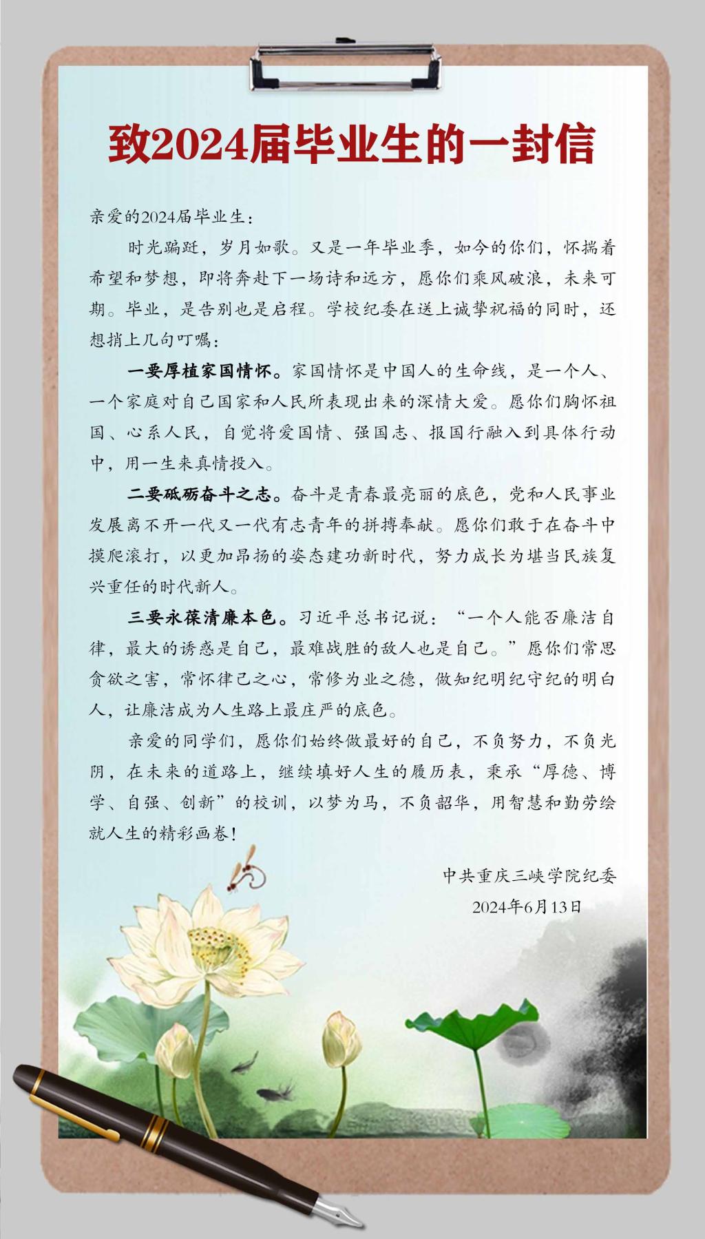 beat365官方网站纪委致2024届毕业生的一封信