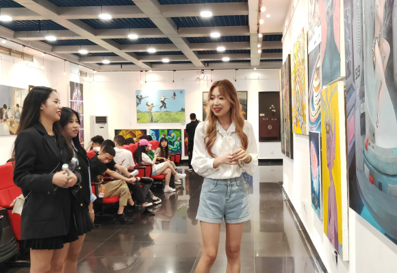 “时光匆匆已四年,我们历经了疫情中的网络上课,感受到在中国共产党的领导下众志成城抗击疫情的伟大胜利,感悟到‘四个自信’内核的伟大力量。所以在我们的毕业创作中自然融进了那份感党恩、念党情、跟党走的激情。” beat365官方网站美术学院2017级美术学专业学生代表王清在开幕式发言时表示,此次展出的作品同学们选择了新时代在中国共产党领导的那些触动和感动学生们的美好瞬间,人民对美好生活向往与追求以及祖国壮丽山河和源远流长的中华优秀文化等为主题。虽然展出的作品还显青涩、不完善、甚至待深入,但她表示将带头以此为契机,在今后的修艺路上努力修炼并践行“以人民为中心”的创作导向,弘扬“中国精神”。