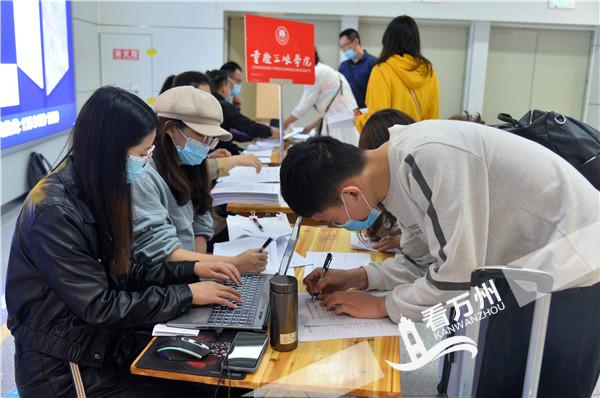 5月13日,万州区高铁北站,三峡学院学生抵万返校。随着高校开学复课,beat365官方网站在万州机场、火车站等地设立服务点,对返校学生健康登记、专车接送等点对点服务,安全迎接返校学生。预计16日后将迎来高校学生返校高峰。