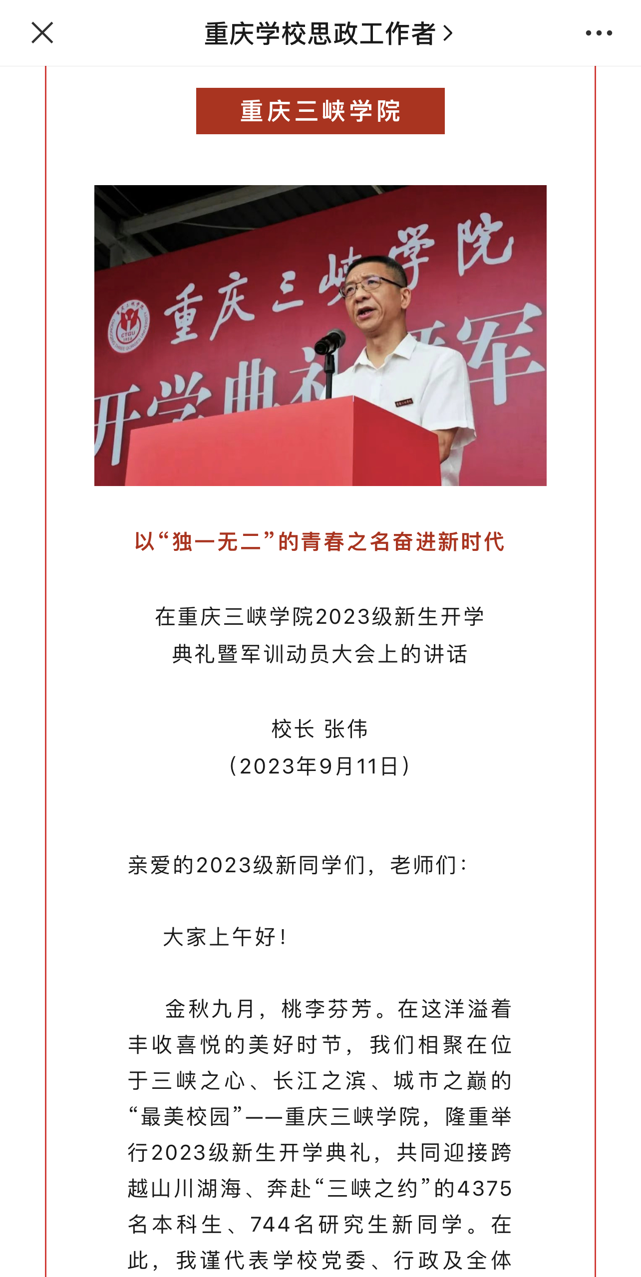 下一条:2023年9月12日《重庆大学生微讯》:直击现场!重庆各高校举行新生开学典礼暨军训动员大会