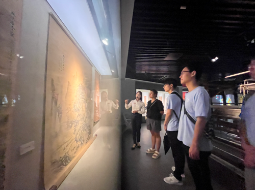 进入梁平区博物馆,在讲解员的带领下,成员们先后走进“历史篇——梁平春秋”与“非遗篇——缤纷非遗”两大主展厅,沉浸式参观古邑梁山、万石耕春、古寨驿道、禅宗祖庭、烈火丹心、梁平名人等六个具有丰富文化内涵的主题单元区,初步了解梁平地区深厚的文化底蕴与昂扬向上的精神风貌。在缤纷非遗展厅,解说员向大家详细解读了梁平木版年画、梁平竹帘、梁山灯戏、梁平癞子锣鼓、梁平抬儿调等5项国家级非物质文化遗产和部分市级非物质文化遗产的艺术与文化特色,置身“缤纷非遗”展厅内,信步品鉴,每一步都踏着浓厚的历史文明足迹,每一眼都是令人啧啧称奇的非遗艺术瑰宝,团队成员们身临其境感知梁平的历史文脉,精彩丰富的梁平文物和文化让大家赞叹连连。