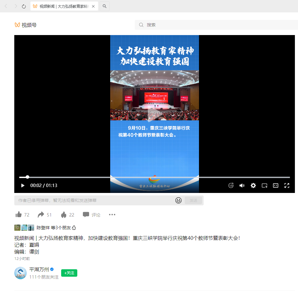 2024年9月10日《平湖万州》:视频新闻 | 大力弘扬教育家精神,加快建设教育强国!beat365官方网站举行庆祝第40个教师节暨表彰大会!