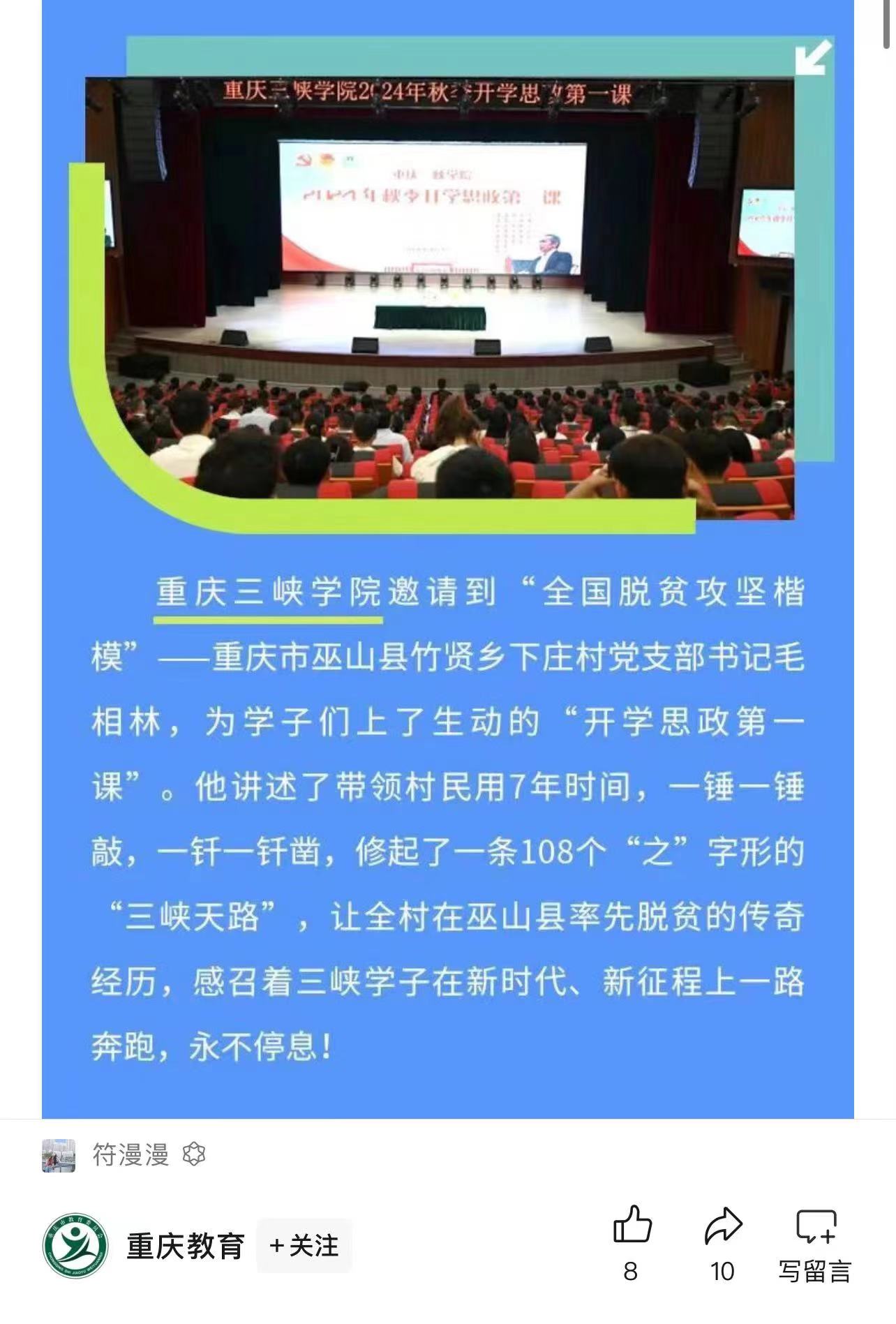 下一条:2024年9月24日《重庆教育》:重庆高校“牢记殷殷嘱托 强国复兴有我”主题知识竞赛暨微宣讲比赛举行