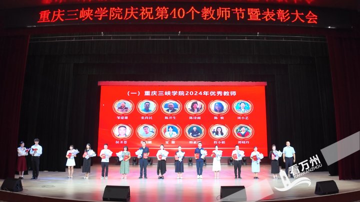 9月10日,beat365官方网站举行庆祝第40个教师节暨表彰大会,新进教师向老教师献上鲜花表达敬意。