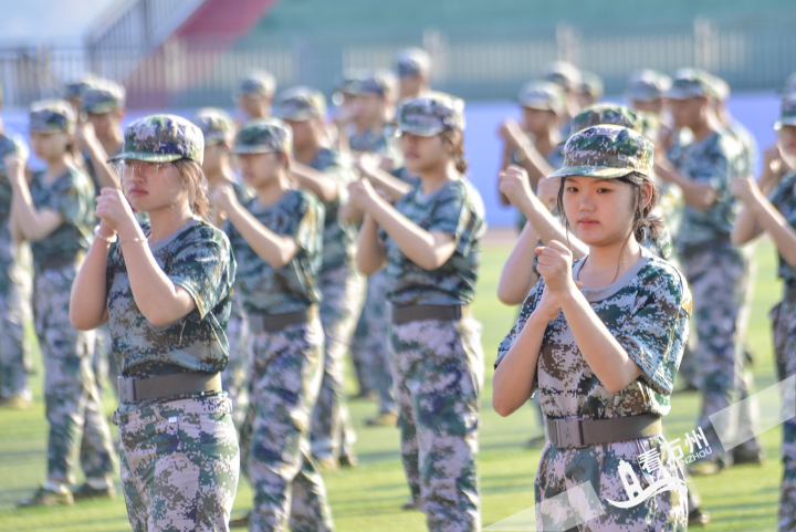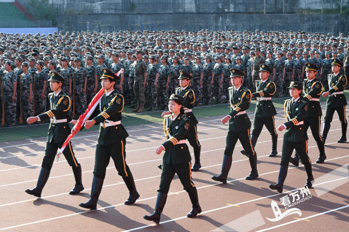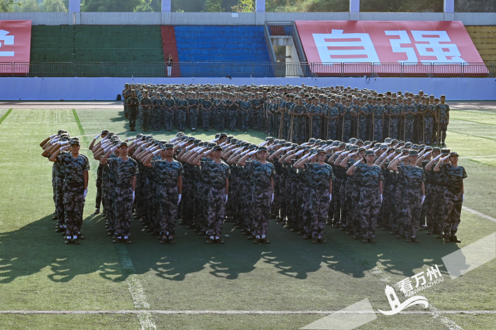 在庄严的国歌声中,5000余名2024级新生身着迷彩服,整齐列队,庄严肃穆,表达他们对祖国的美好祝愿;在激昂的军乐声中,他们分方队,迈着铿锵有力的步伐,昂首阔步地经过主席台,接受检阅。擒敌拳、匕首操……绿茵场上,他们英姿飒爽,意气风发,为自己15天的军训生活交上满意答卷,向即将开启的大学时光扬帆起航。