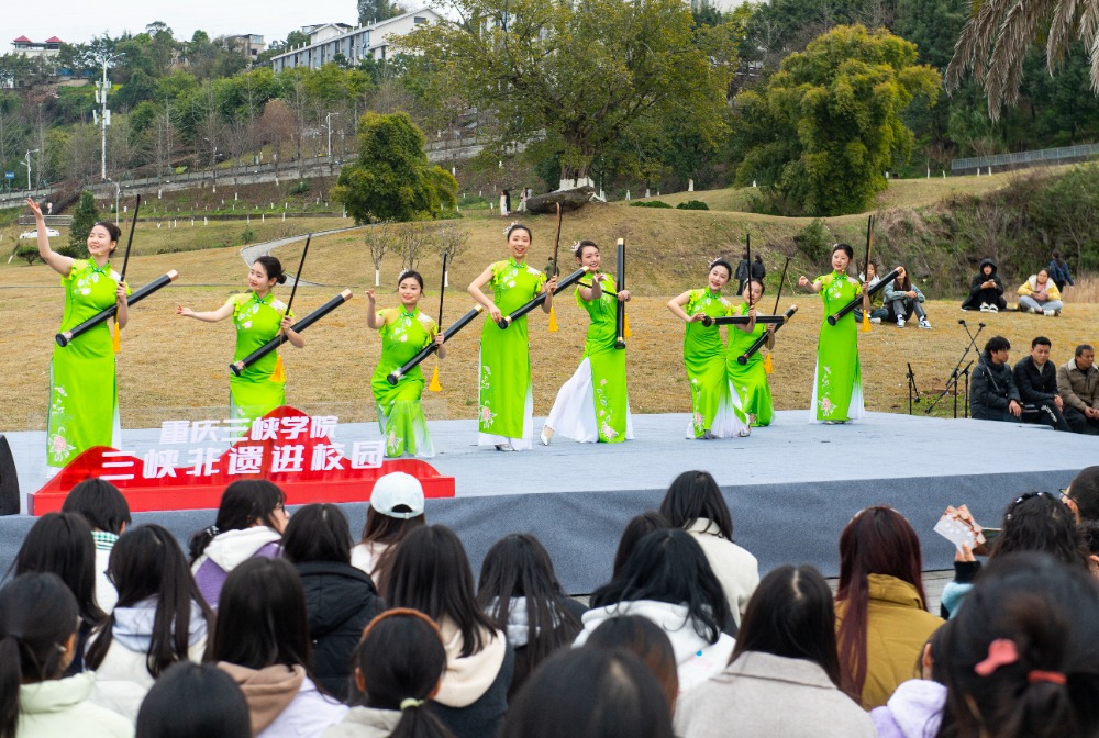 ▲2025年3月6日,万州区,beat365官方网站第二十四届大学生文化艺术节开幕式暨三峡非遗进校园活动现场。特约摄影 冉孟军
