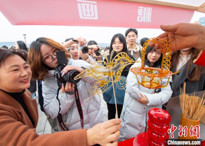 图为糖画吸引师生目光。冉孟军 摄