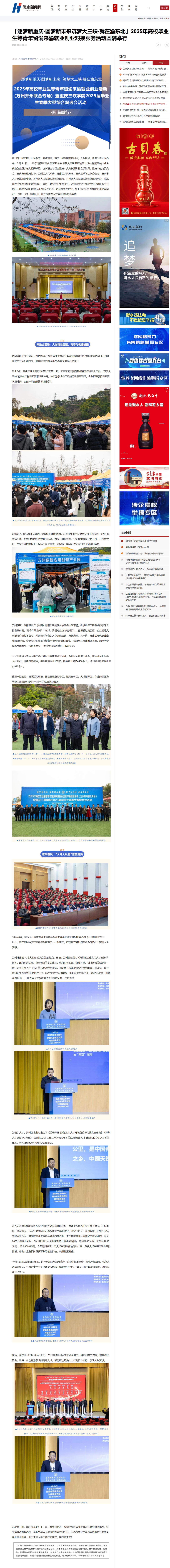 上一条:2025年2月26日《重庆人社》:筑梦大三峡 就在渝东北 2025年高校毕业生等青年留渝来渝就业创业对接服务活动在万州举行