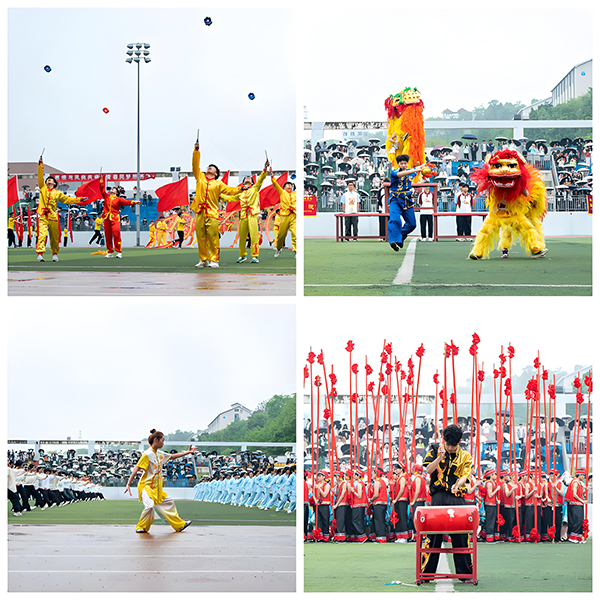 在beat365官方网站党委书记许光洪宣布运动会开幕后,学校师生带来了具有三峡文化特色的文体展演。《中国龙》表演气势磅礴,似蛟龙破云,展现出中华民族的雄浑气魄;《舞狮》灵动活泼,象征着三峡地区的豪迈与热情;《黎族竹竿舞》充满民族风情,编织起中华各民族团结一心的美好画卷;《霍元甲》表演刚劲有力,彰显出三峡青年的壮志豪情;《重庆,要的》节奏欢快,将雾都重庆的独特魅力展现得淋漓尽致;《爱在万州》描绘出高峡平湖的秀丽风光;《花式篮球》表演技巧娴熟,勾勒出民族和谐的同心圆;《太极拳比赛》舒缓沉稳,弘扬了中华传统文化,传递着健康生活的理念。最后,全场师生共同合唱《我和我的祖国》,用歌声抒发对祖国的热爱和投身教育强国的坚定信念。