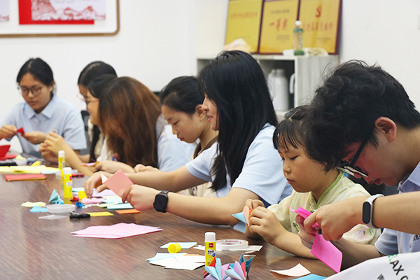 “匠心非遗,美育童心”活动中,实践团成员和当地儿童用双手感受非遗魅力。
